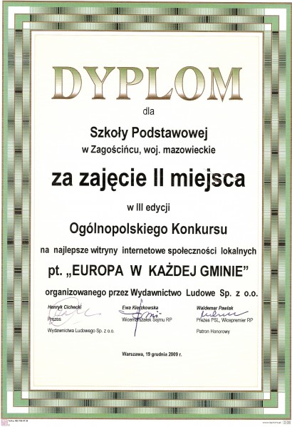 www.spzag.wolomin. pl – odniosła ogromny sukces w Ogólnopolskim Konkursie na witryny internetowe, promujące społeczności lokalne – „Europa w każdej gminie, edycja III”,
