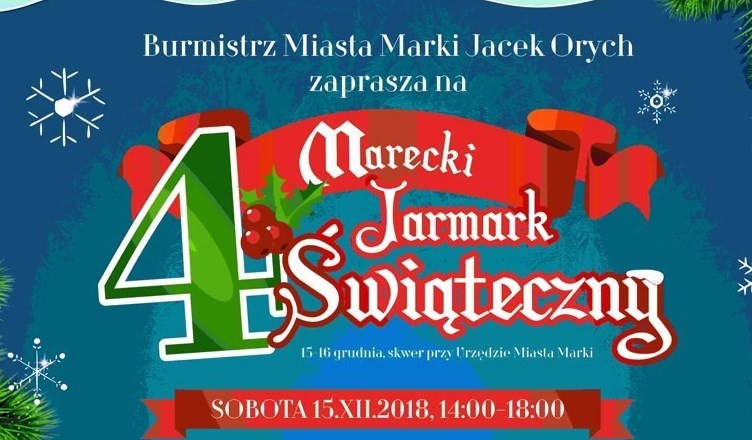 15 grudnia 2018, godz. 14:00 obok ratusza, przy mareckiej ciuchci (Aleja Piłsudskiego 95) rozpocznie się Jarmark Świąteczny w Markach.