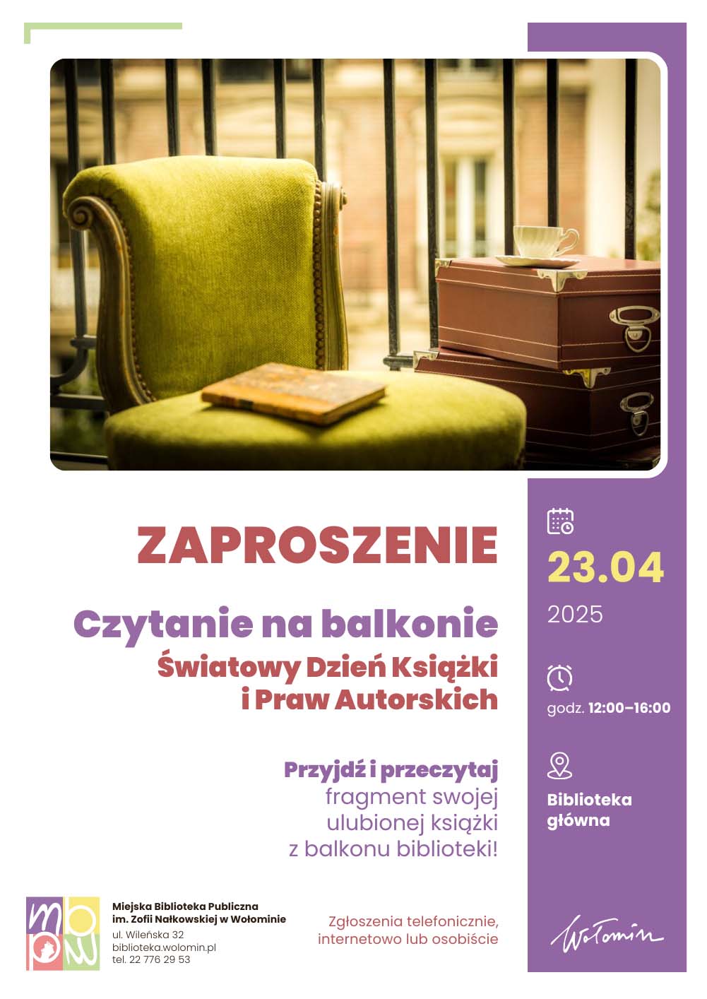 Z tej okazji biblioteka zachęca do przeczytania fragmentu swojej ulubionej książki z bibliotecznego balkonu – na głos, dla wszystkich, którzy kochają literaturę tak jak my.