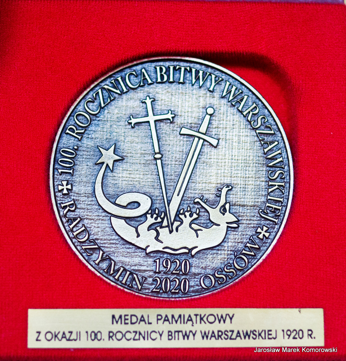Również Starostwo Wołomińskie jako gospodarz uroczystości na polach Ossowa, pokazało że Bitwa Pod Komarowem jest ważnym wydarzeniem w sierpniowych obchodach. Na ręce Komendanta Komarowskiej Potrzeby złożono pamiątkowy medal wybity specjalnie na obchody setnej rocznicy „Cudu nad Wisłą”, a projekt medalu był wice starosta wołomiński Robert Szydlik . Medal w imieniu Starostwa przekazał mieszkaniec powiatu wołomińskiego Arkadiusz Ziółkowski, który reprezentuje kawalerie ochotniczą w barwach 11 Pułku Ułanów Legionowych .