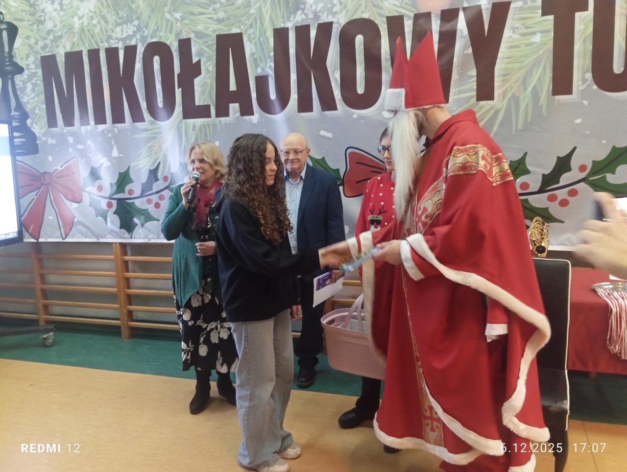 Mikołajkowy Turniej Szachowy na V i IV Kategorię Szachową odbył się 6 grudnia 2025 r. w Liceum Ogólnokształcącym im. rtm. Witolda Pileckiego w Markach, ul. Piłsudskiego 91. Organizatorami wydarzenia były Pani Dyrektor Grażyna Sobierajska oraz Fundacja Wzrastaj – Kultura, Edukacja, Sport.