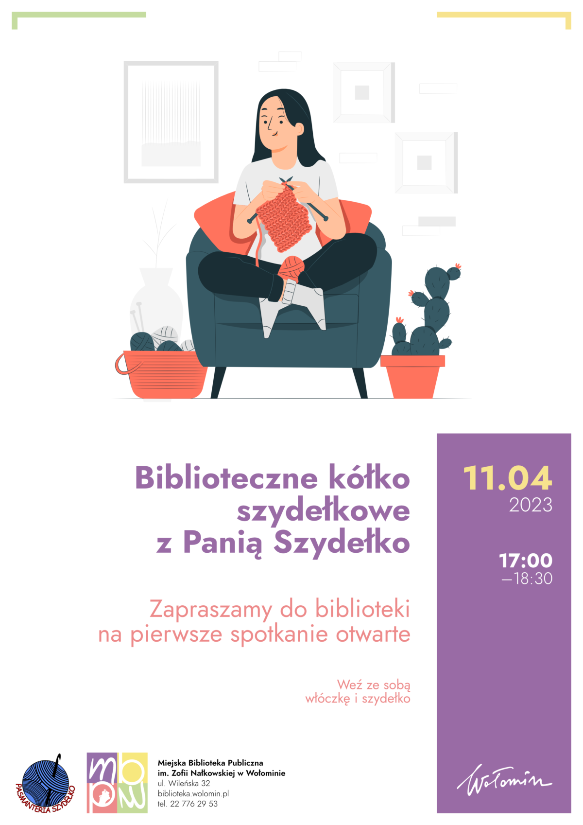 Miejska Biblioteka Publiczna w Wołominie zaprasza na dwa nowe wydarzenia, które startują 11 kwietnia: Biblioteczne kółko szydełkowe z Panią Szydełko oraz Kurs podstawowy obsługi smartfona.