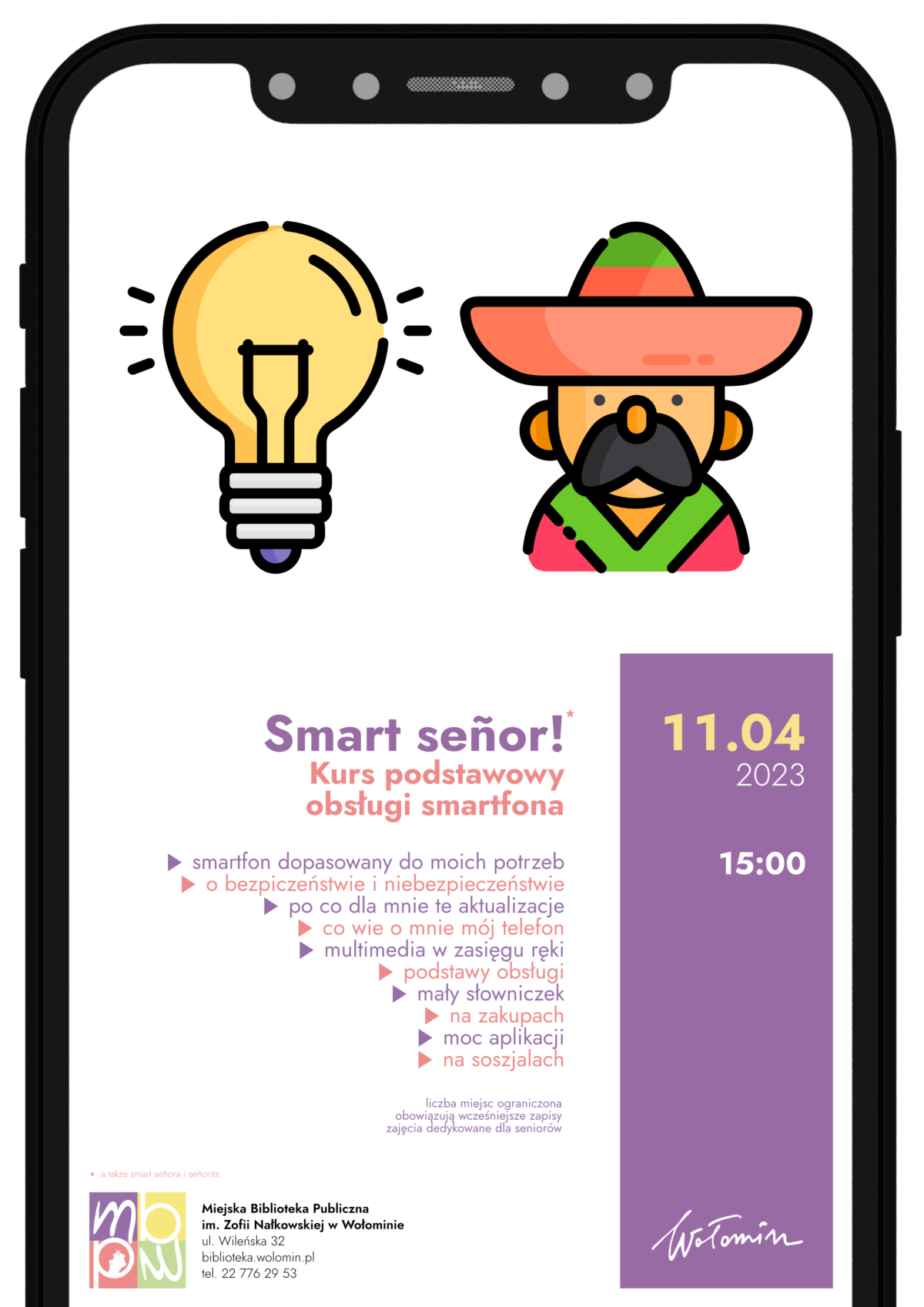 Również 11 kwietnia w bibliotece ruszy kurs dla seniorów chcących dowiedzieć się czegoś więcej o swoim smartfonie. Tematyka będzie bardzo urozmaicona: od tzw. higieny korzystania z urządzenia podłączonego do Internetu, poprzez odwieczne pytanie „Panie! a na co dla mnie te aktualizacje?”, aż po efektywne wykorzystywanie aplikacji.
