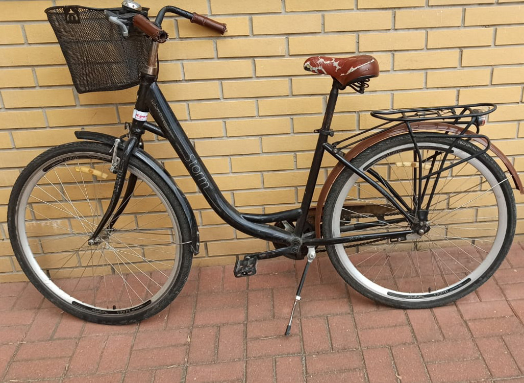 – roweru miejskiego typu damka koloru czarnego z brązowymi wstawkami marki STORM