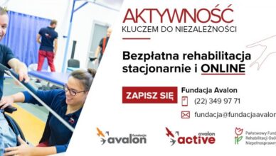 Działająca od 2006 r. Fundacja Avalon zaprasza osoby z niepełnosprawnością (ruchową lub neurologiczną) na bezpłatną, indywidualną rehabilitację online. To projekt ?Aktywność kluczem do