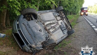 Policjanci wyjaśniają okoliczności i przyczynę zdarzenia drogowego jakie miało miejsce w Malechach, gdzie doszło do dachowania samochodu osobowego. Jedna osoba trafiła do szpitala.
