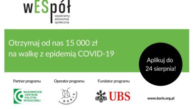 wESpół wspieramy ekonomię społeczną 2020-08-19Aleksandra Olczyk Komentarz Celem programu jest minimalizowanie lub przeciwdziałanie skutkom epidemii COVID-19 w społecznościach lokalnych, np. poprzez działania na rzecz osób lub instytucji. Kwota dofinansowania to [...]
