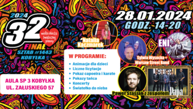Burmistrz Miasta Kobyłka Edyta Zbieć, Dyrektor Miejskiego Ośrodka Kultury Agnieszka Kacprzak oraz Sztab #1443 WOŚP Kobyłka z Dyrektorem Tomaszem Szturo na czele serdecznie zapraszają