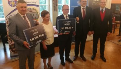 26 września Wójt Gminy Jadów odebrał dwa czeki na przebudowę dróg z Funduszu Dróg Samorządowych. W ramach środków otrzymanych z Województwa wykonane zostaną