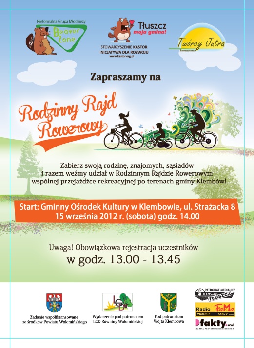 Stowarzyszenie „Kastor”, Nieformalna Grupa Młodzieży „Beaver Zone” oraz stowarzyszenie „Twórcy Jutra” zapraszają 15 września na rekreacyjny rajd rowerowy po terenach gminy Klembów. Rejestracja