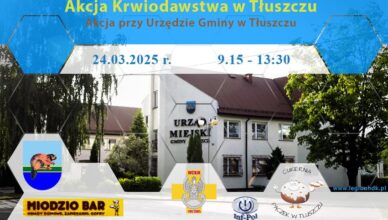Już 24 marca 2025 roku mieszkańcy Tłuszcza będą mieli okazję wziąć udział w akcji krwiodawstwa, która odbędzie się przed budynkiem Urzędu Miejskiego. Organizatorzy