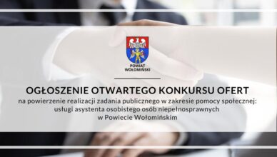 Starostwo Wołomińskie ogłasza otwarcie konkursu ofert na powierzenie realizacji zadania publicznego w zakresie pomocy społecznej: usługi asystenta osobistego osób niepełnosprawnych w Powiecie Wołomińskim,