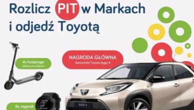 Do niedzieli możecie wziąć udział w loterii i wygrać auto, hulajnogę elektryczną lub zegarek sportowy. Jeśli jesteś pełnoletnim mieszkańcem Marek, rozliczyłeś podatek dochodowy w