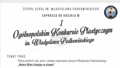 Inspiracją prac konkursowych jest twórczość Władysława Podkowińskiego, Patrona Zespołu Szkół w Mokrej Wsi. Temat pracy konkursowej, ?Piękno polskich rzek, jezior i stawów, inspirowane obrazem