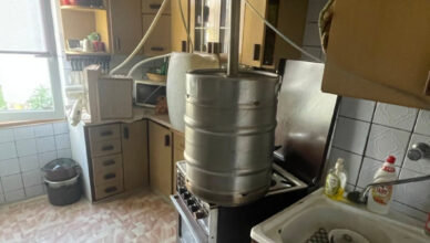 Funkcjonariusze Wydziału dw. z Przestępczością Gospodarczą i Korupcją KMP w Ostrołęce zabezpieczyli niemal 500 litrów bimbru. Mężczyzna prowadził nielegalny proceder w bloku. Zabezpieczono