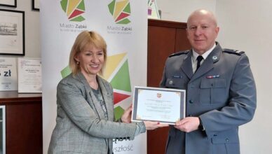 Burmistrz Ząbek Małgorzata Zyśk podziękowała dziś za kilkuletnią współpracę i służbę na rzecz miasta, dotychczasowemu komendantowi ząbkowskiej Policji, podinsp. Marcinowi Pałysce. Od piątku