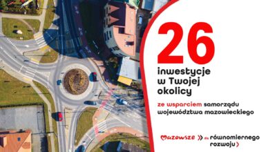 Rozbudowa dróg w powiecie otwockim, utworzenie centrum opiekuńczo-mieszkalnego w Legionowie, skweru miejskiego w Chorzelach oraz budowa chodników, ścieżek rowerowych i bezpiecznych przejść dla pieszych w