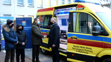 W poniedziałek 28 grudnia starosta Adam Lubiak przekazał na ręce dyrekcji Szpitala Matki Bożej Nieustającej Pomocy w Wołominie nową karetkę na potrzeby placówki.