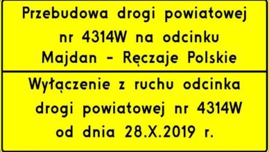 Starostwo wołomińskie informuje, że w dnu 28 października w związku z rozpoczęciem przebudowy drogi powiatowej nr 4314W na odcinku Majdan-Ręczaje Polskie, droga od