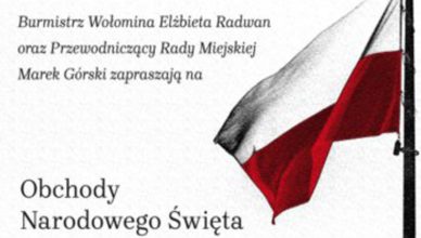 Burmistrz Wołomina Elżbieta Radwan oraz Przewodniczący Rady Miejskiej Marek Górski serdecznie zapraszają na wołomińskie obchody Narodowego Święta Niepodległości 11 listopada 2019 roku. Niech