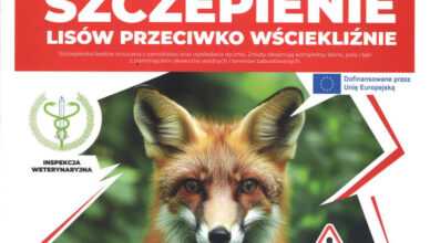 W terminie 27 marca – 2 kwietnia 2025 roku mazowiecki wojewódzki lekarz weterynarii z udziałem powiatowych lekarzy weterynarii przeprowadzi ochronne szczepienie lisów wolno żyjących