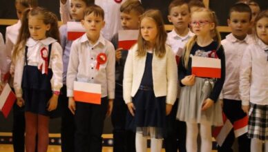 Słowa „Jeszcze Polska nie zginęła kiedy my żyjemy” z ust dzieci i młodzieży, które wybrzmiały o symbolicznej godzinie 11:11 w przeddzień 105 rocznicy