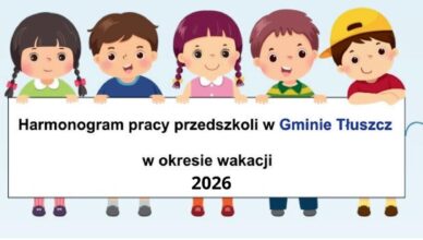 Tłuszcz – Harmonogram pracy przedszkoli w okresie wakacji 2026 2026-03-29Aleksandra Olczyk Komentarz Burmistrz Tłuszcza informuje, że w okresie od 1 lipca 2026 r. do 31 sierpnia 2026 r. organizowane będą dyżury przedszkoli i oddziałów przedszkolnych [...]