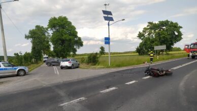 W Wildze na skrzyżowaniu DW 801 i DK 76 doszło do wypadku drogowego z udziałem samochodu osobowego i motocykla. Kierowca jednośladu z obrażeniami