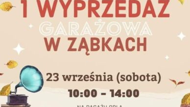 Burmistrz Miasta Ząbki Małgorzata Zyśk zaprasza do wzięcia udziału w WYPRZEDAŻY GARAŻOWEJ, która odbędzie się 13 września na MOSiR Ząbki w godzinach 14:00 – 17:00 w