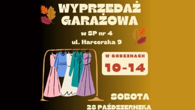Po sukcesie ostatniej wyprzedaży garażowej, zapraszamy na kolejną, która odbędzie się najbliższą sobotę, 30 września 2023 r. w godzinach 9.00 do 14.00 w