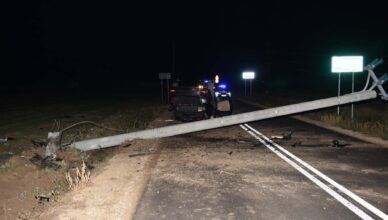 Kierujący BMW zakończył swoją brawurową jazdę na słupie energetycznym i uciekł z miejsca zdarzenia. Kierowca jechał z pasażerem, którego po zdarzeniu pozostawił bez