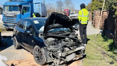 Przed południem w środę 29 marca przy ulicy Głównej w Starym Grabiu młoda kobieta podróżująca Oplem Corsą nagle zjechała na przeciwległy pas ruchu