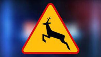 Policjanci ruchu drogowego pracowali na miejscu zdarzenia drogowego z udziałem samochodu osobowego i zwierzyny leśnej. Kierujący bmw zderzył się z łosiem, który wbiegł