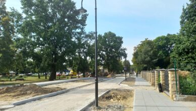 Coraz wyraźniej rysuje się nowy kształt ulicy Jagiellońskiej. Na całej długości ułożony jest już chodnik. Na odcinku od Gromali do Kolejowej ustawiono nowe,