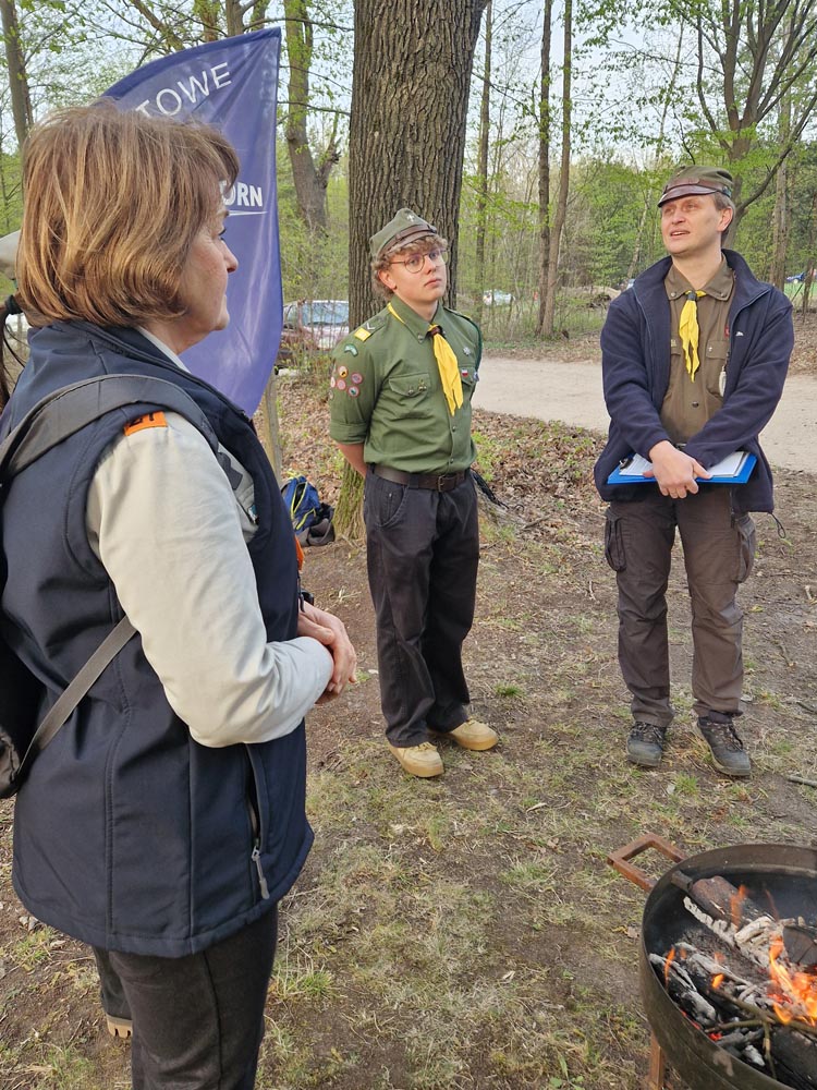 Zanim jednak rozbłysło ognisko, zanim padły słowa Przyrzeczenia, była cisza skupienia i próba odpowiedzialności. Zbiórka inspekcyjna – prosta w formie, a głęboka w znaczeniu – stała się momentem prawdy. Meldunek Drużynowego, przyjęty przez Komendanta Hufca Zalew, dh hm Radosława Kabacińskiego, nie był jedynie formalnością. Był świadectwem drogi, którą młodzi ludzie już przeszli – drogi wysiłku, nauki, prób i małych zwycięstw nad samym sobą.