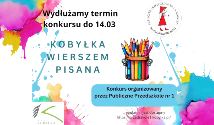Konkurs skierowany jest do dzieci w wieku 3-6 lat, które uczęszczają do przedszkoli w Kobyłce oraz ich rodziców. To doskonała okazja, by razem stworzyć wyjątkowy wiersz o Kobyłce! Konkurs trwa do 14 marca 2025 roku.