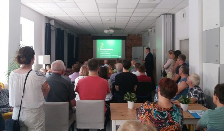 Na spotkaniu osoby fizyczne posiadające prawo do dysponowania istniejącymi już nieruchomościami lub nieruchomościami w trakcie budowy lub na etapie projektu  uzyskały informacje o możliwościach pozyskiwania dotacji na:
