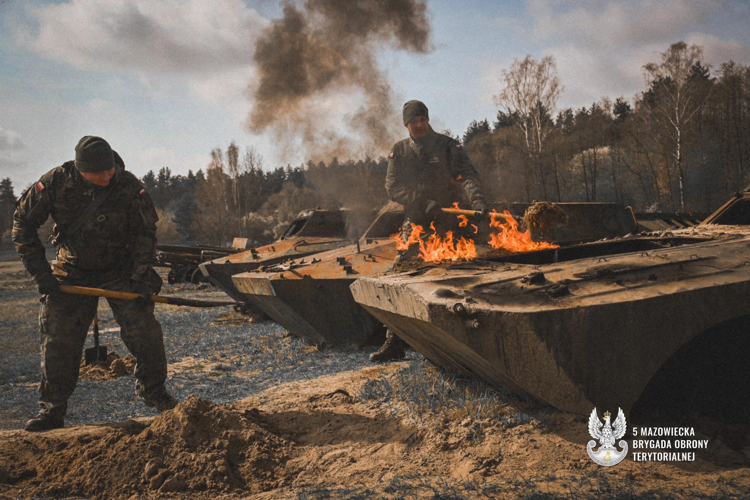 Terytorialsi 5 Mazowieckiej Brygady Obrony Terytorialnej przeszli intensywne szkolenie w Brodnicy, gdzie w pełnym umundurowaniu pokonywali płonący tor napalmowy i ewakuowali się z płonących pojazdów. W trudnych warunkach doskonalili umiejętności obrony przed bronią masowego rażenia oraz reagowania na zagrożenia związane z materiałami zapalającymi.