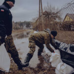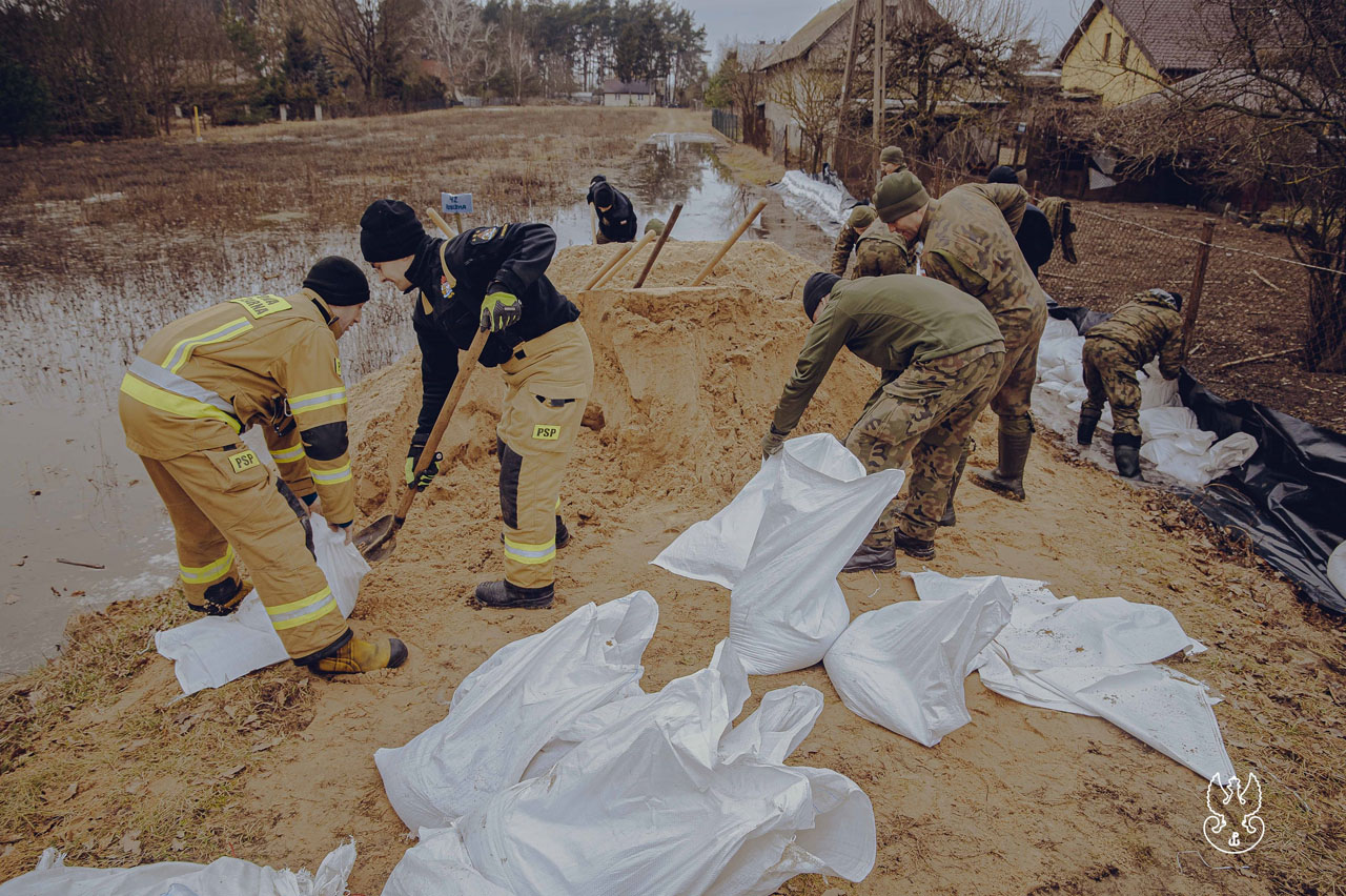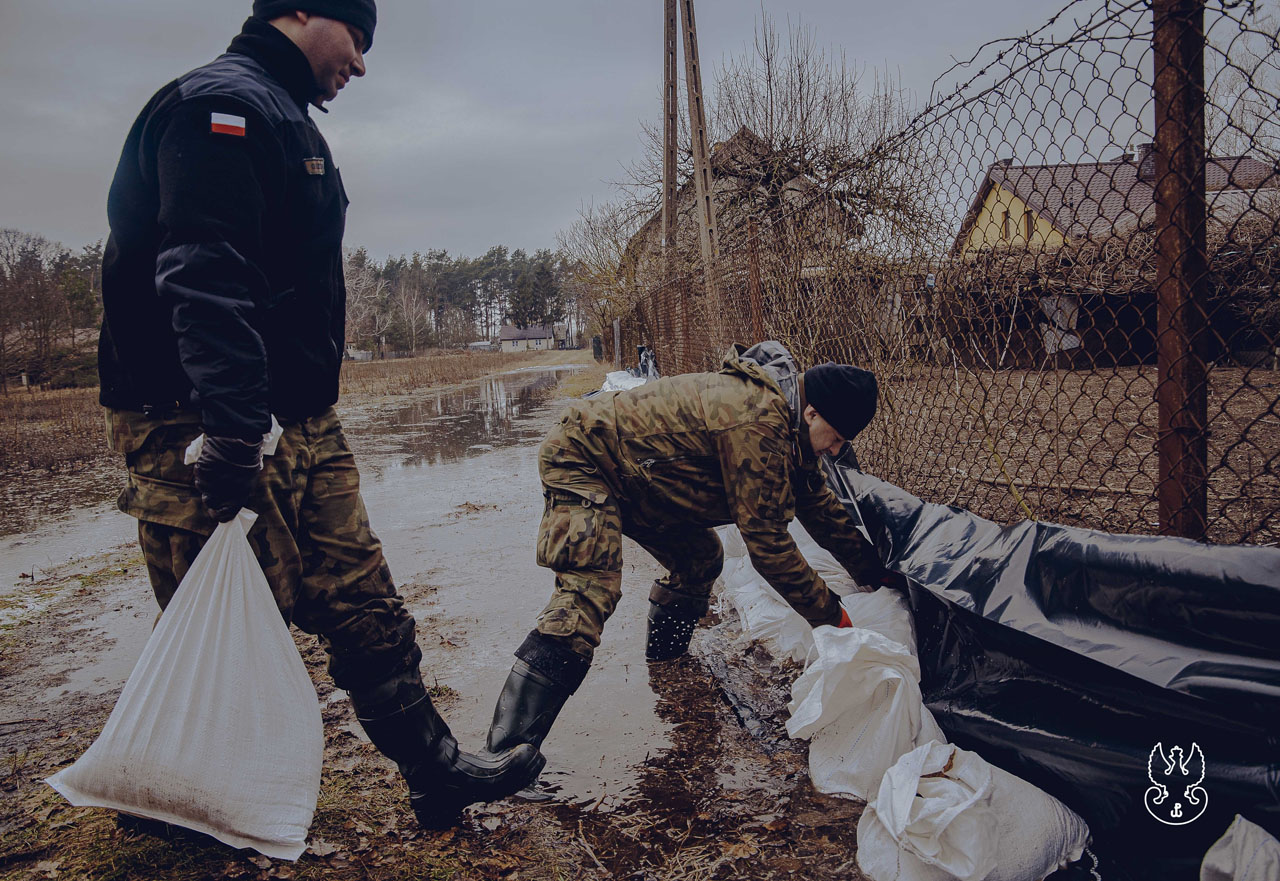 5 Mazowiecka Brygada Obrony Terytorialnej przy współpracy z Państwową Strażą Pożarną w Wyszkowie realizuje działania w ramach zarządzania kryzysowego, mające na celu przeciwdziałanie skutkom powodzi na terenie północnego Mazowsza, w okolicach Wyszkowa.