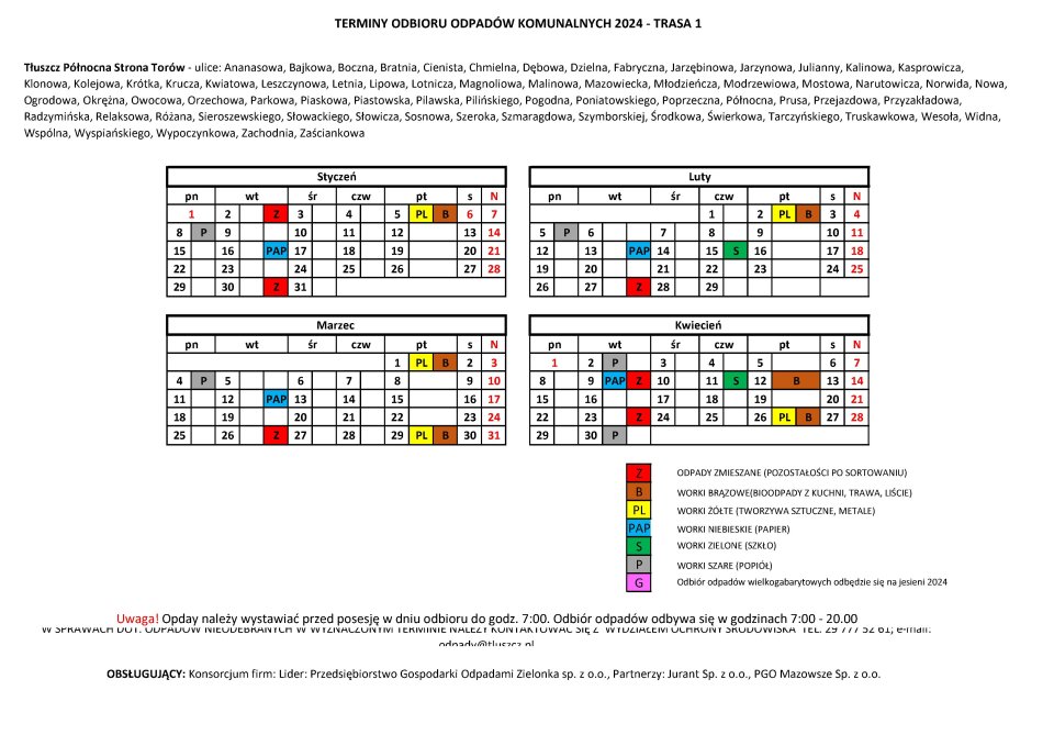 Dostępne są już nowe harmonogramy odbioru odpadów komunalnych na 2024 rok. Do części nieruchomości zostały one już dostarczone przez firmę odbierają odpady. Harmonogramy można też otrzymać w Urzędzie Miejskim w Tłuszczu (znajdują się na ścianie na wprost wejścia od strony Ogródku Jordanowskiego).