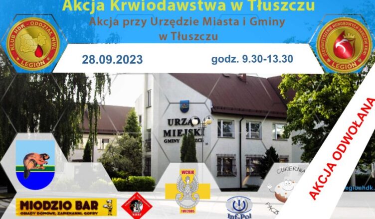 Zaplanowana na najbliższy czwartek akcja nie odbędzie się. Możecie oddać krew w Regionalnym Centrum Krwiodawstwa i Krwiolecznictwa w Warszawie ul. Saska 63/75 oraz 3 Oddziałach Terenowych w Warszawie- ul. Cegłowska 80, al. Dzieci Polskich 20 oraz ul. Nowogrodzka 59. Godziny rejestracji są dostępne na stronie https://www.rckik-warszawa.com.pl/gdzie-i-kiedy-oddac-krew.