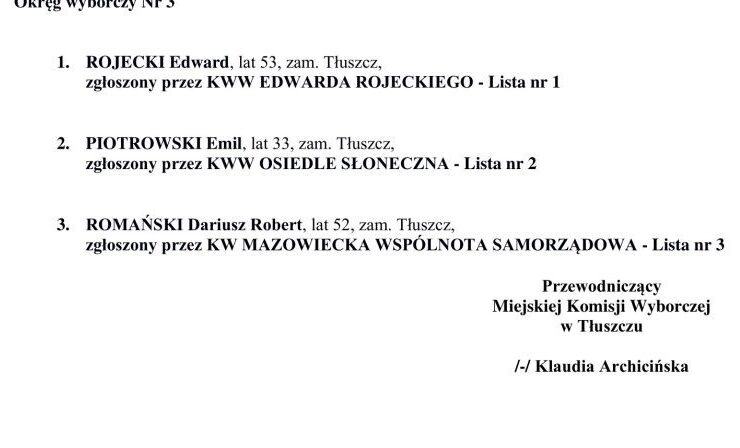 Wybory uzupełniające do Rady Miejskiej w Tłuszczu
