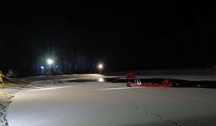 Po przybyciu pierwszych zastępów na miejsce potwierdzono, że na zbiorniku wodnym znajduje się przerębel, a na jego powierzchni widoczna była kobieta. Jako pierwsi do działań przystąpili strażacy Ochotniczej Straży Pożarnej, którzy natychmiast podjęli osobę poszkodowaną z wody. Była to 48-letnia kobieta, którą niezwłocznie ewakuowano w bezpieczne miejsce.