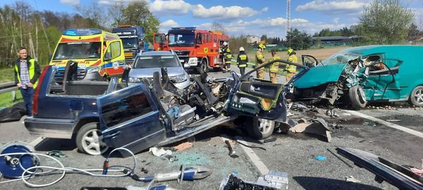 Poważny wypadek z udziałem trzech pojazdów. 18-latek trafił do szpitala śmigłowcem LPR