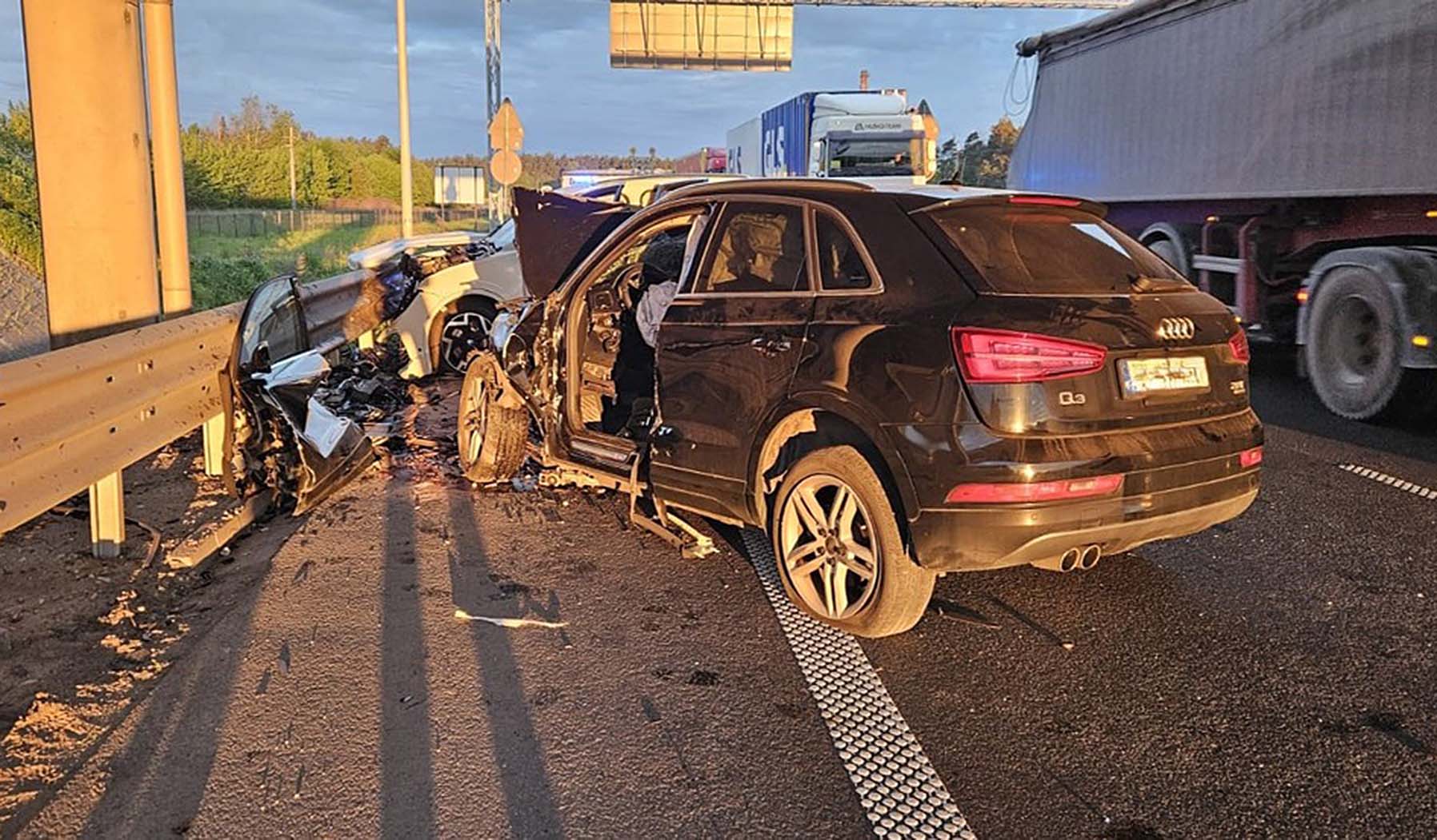 Ciężarówka wjechała w barierki na trasie S7. Setki puszek z piwem wypadły na drogę!