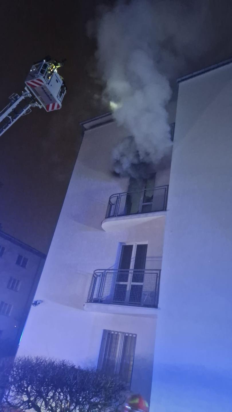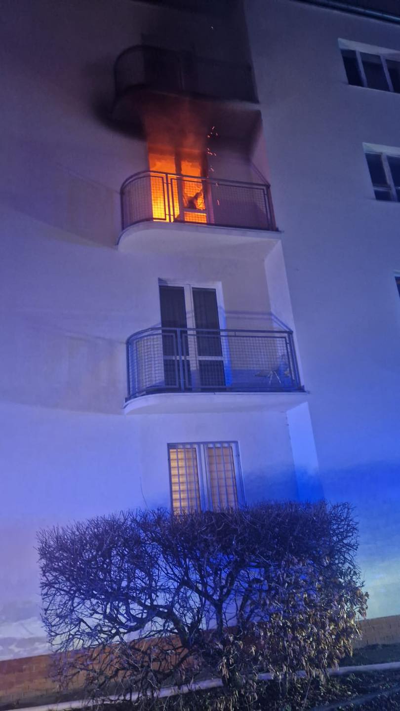Na miejsce zdarzenia zadysponowano 4 zastępy PSP. Zastano pożar mieszkania w fazie rozwiniętej. Jedna osoba została ewakuowana z balkonu płonącego mieszkania przy użyciu drabiny mechanicznej; natomiast druga osoba pozostawała wewnątrz.