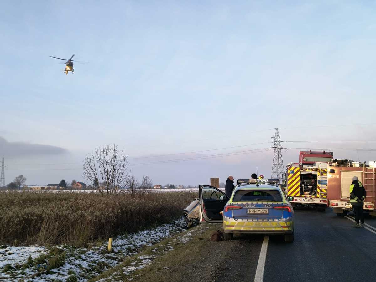 Poważny wypadek z udziałem trzech pojazdów. 18-latek trafił do szpitala śmigłowcem LPR