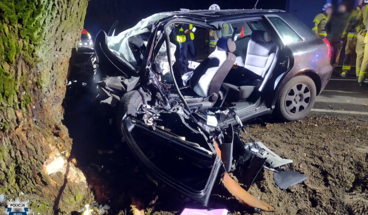 Jak wynika z ustaleń policjantów, pracujących na miejscu wypadku, 32-letni mieszkaniec Mławy, jadąc audi w kierunku Ciechanowa, z nieznanych przyczyn, zjechał na przeciwległy pas ruchu i uderzył w drzewo. Pomoc wezwał przejeżdżający tamtędy, przypadkowy kierowca. W chwili interwencji służb ratunkowych, kierowca i pasażerka byli zakleszczeni we wraku pojazdu. Zostali wyjęci z pojazdu przez straż pożarną i przetransportowani przez załogi ratownictwa medycznego do szpitali. 32-letni kierowca, zmarł do przewiezieniu do szpitala w Ciechanowie. Pasażerka, 25-letnia mławianka, w stanie ciężkim trafiła do szpitala w Mławie. Trwają szczegółowe ustalenia przebiegu i przyczyn wypadku.