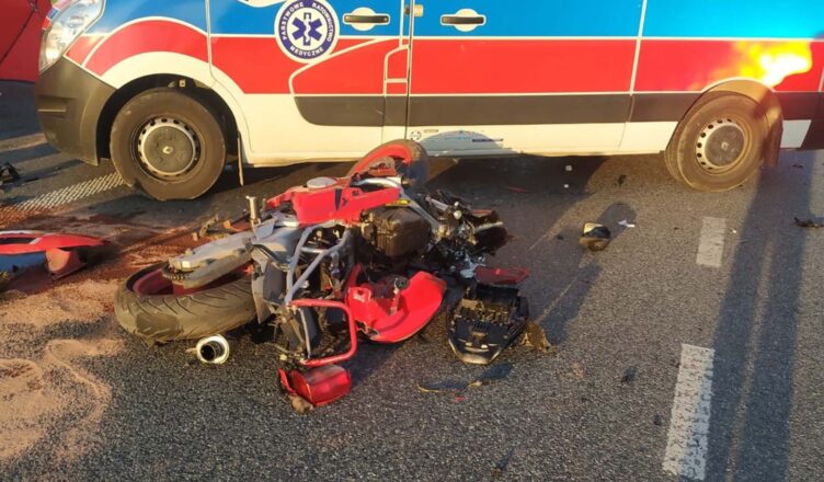 Na skrzyżowaniu doszło do zderzenia motocykla honda z pojazdem kia oraz skoda. Mimo natychmiastowej reanimacji, motocyklista w wyniku odniesionych obrażeń poniósł śmierć.