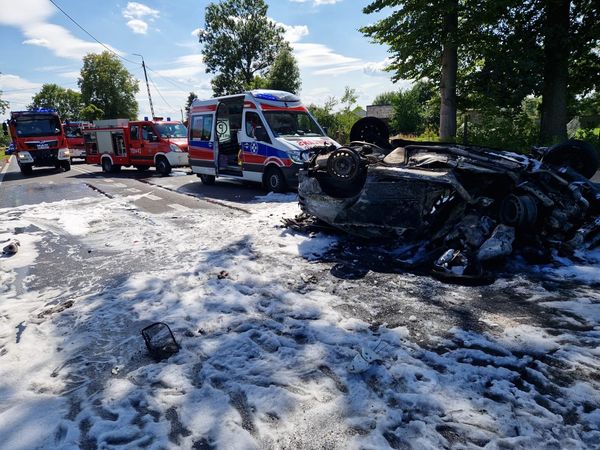 Zgłoszenie o płonącym aucie wpłynęło do stanowiska kierowania Komendy Powiatowej PSP w Wołominie. Na miejsce natychmiast skierowano zastęp z Jednostki Ratowniczo-Gaśniczej PSP Wołomin